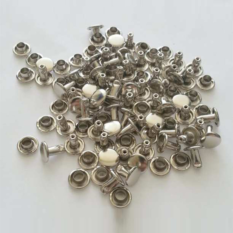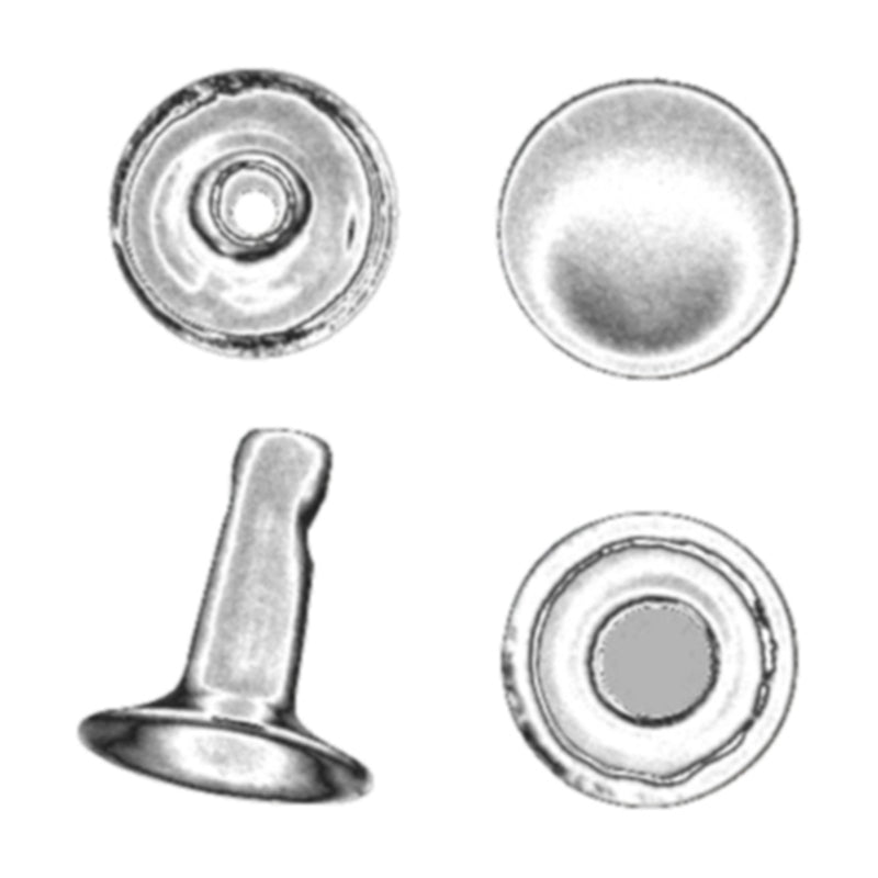 Finish grade rivets for metal belt clips, nickle plated, 50 complete pieces (caps & stems). These short rivets are .25" long and perfect for thin and medium thick leather, cordura, most molded plastic and aluminum alloy cases. Rivet size: 03